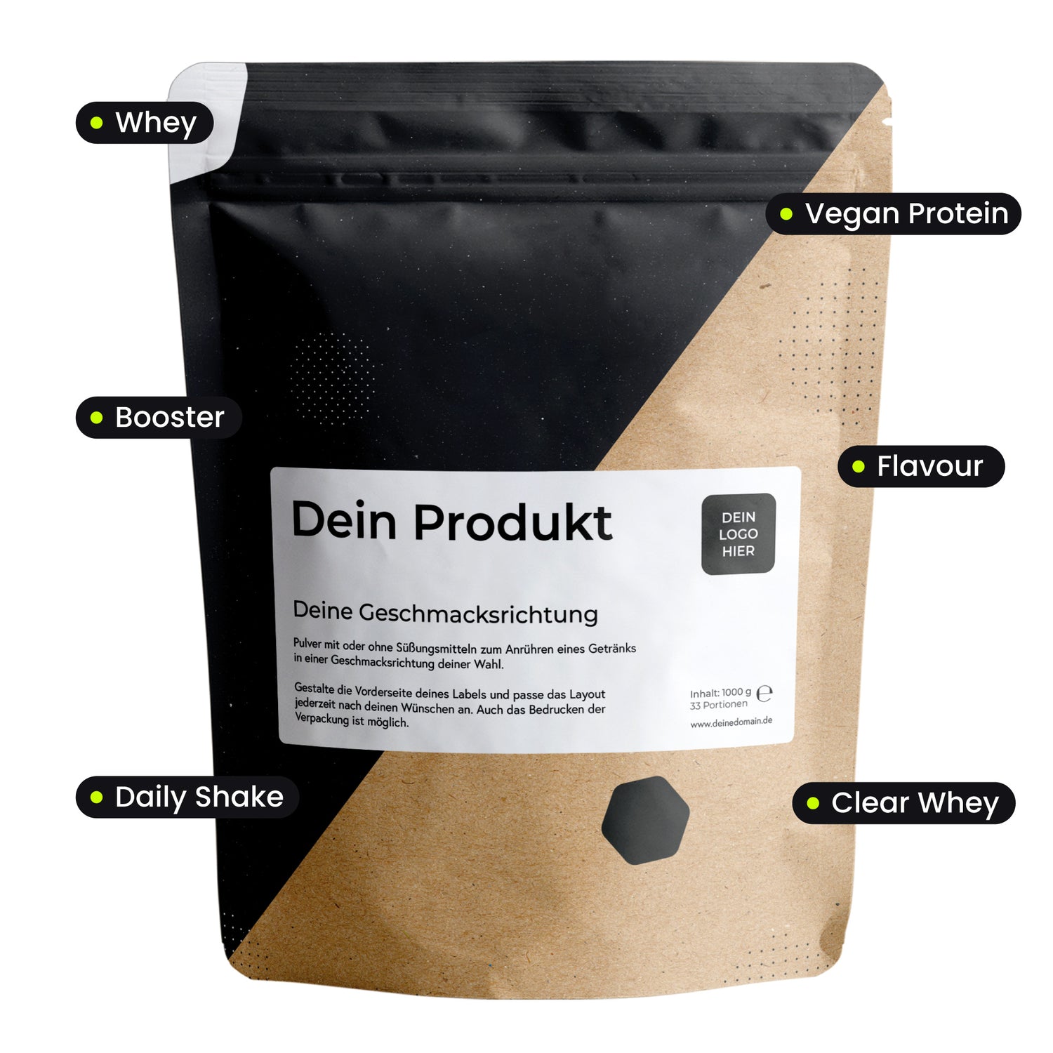 Erstelle dein eigenes Supplement mit hochwertigen Inhaltsstoffen und flexibler Anpassung.